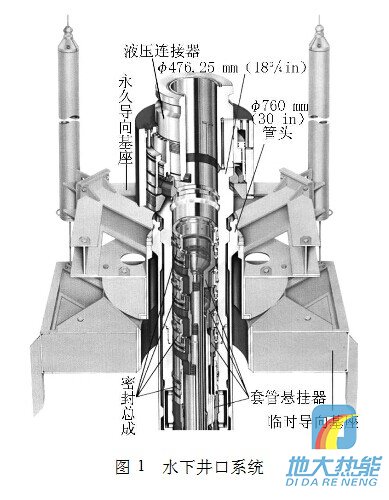 臨時導向基座用于定井位,是首先下入的設備,坐在海底泥線上;永久導向基座安裝在臨時導向基座之上,通過連接在導向柱上的導向繩引導后續工具的入井及設備的安裝;?762mm(30in)導管頭懸掛導管坐落在永久導向基座內,用專用下入工具隨永久導向基座同時下入;?476.25mm(183 /4in)高壓井口頭下部連接表層套管,坐落在導管頭內,通過液壓連接器連接水下防噴器;各層技術套管通過套管掛和密封總成懸掛在高壓井口頭內。